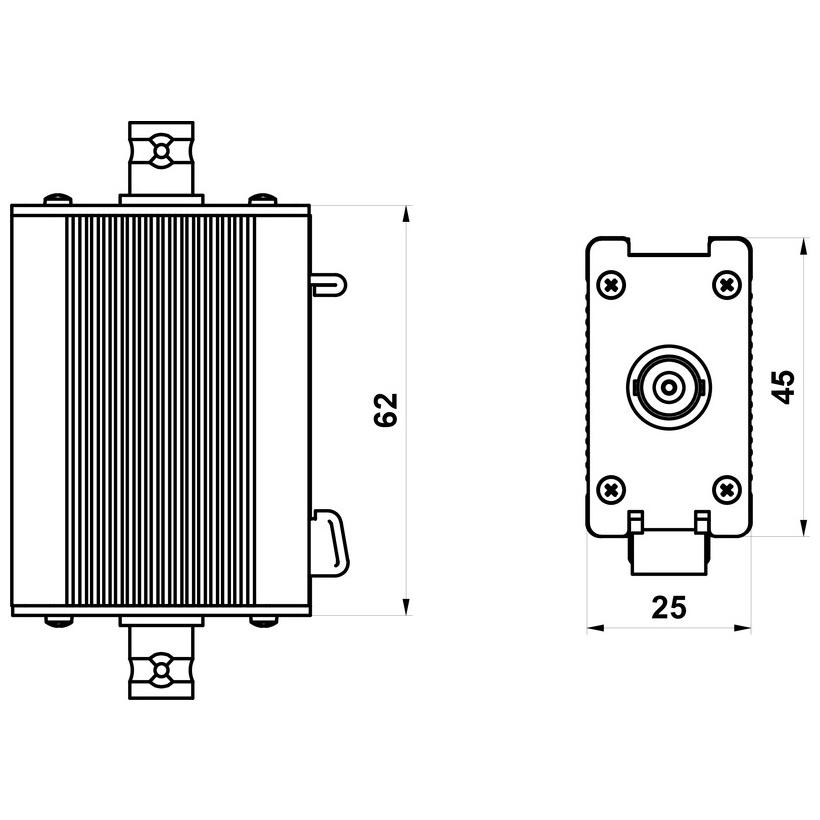 linhas coaxiais 50 Ω ou 75 Ω com conexão via conector BNC