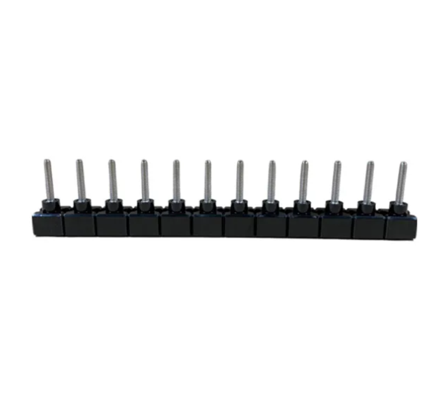 Bloco de ligação, em latão niquelado moldado em baquelite, 1×12 posições, para montagem em painéis no padrão AREMA.
