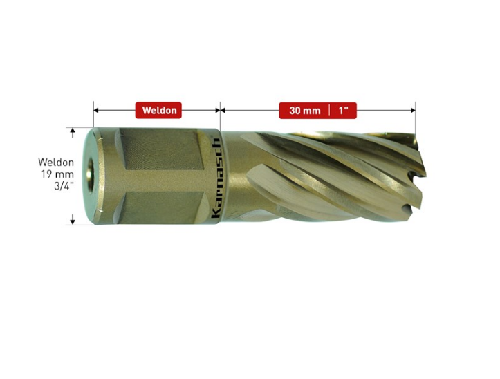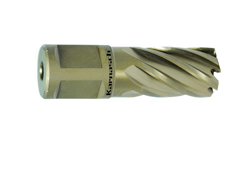 Karnasch Gold-Drill Line são as brocas de núcleo HSS-XE não revestidas mais amplamente utilizadas. - Feito de aço especial HSS-XE de alta liga. Para dureza extrema nas pontas dos dentes [até 68 HRC].