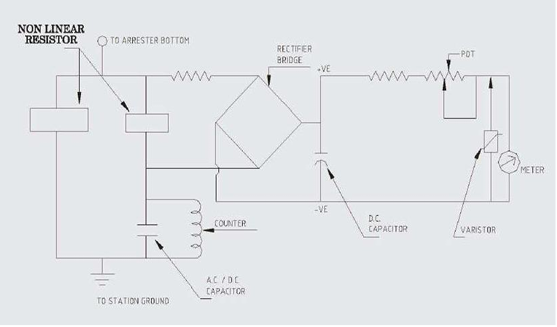 - Um circuito com capacitor- indutor permite que o contador registre e indique o número de descargas que atingiram o para-raios.