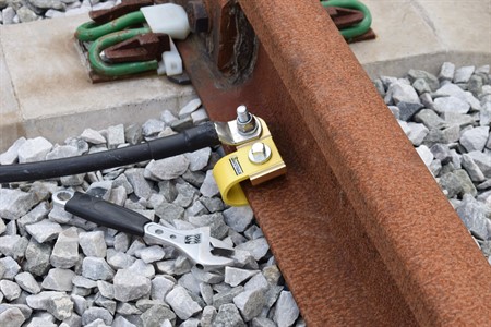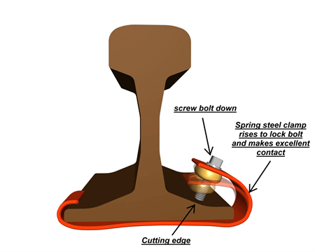 Contato superior graças ao design exclusivo com aço mola especial que garante alta pressão de contato contra o trilho. O parafuso de contato de grandes dimensões, com sua ampla superfície de contato, assegura excelente aderência.
