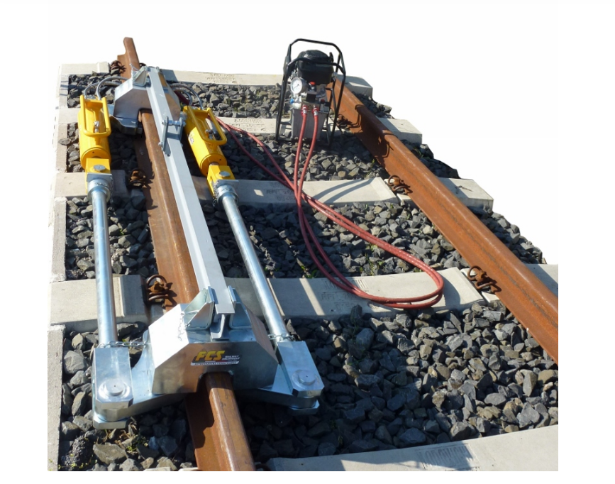 O tensor de trilho hidráulico de alta performance projetado para tensionar trilhos durante o processo de soldagem aluminotérmico.